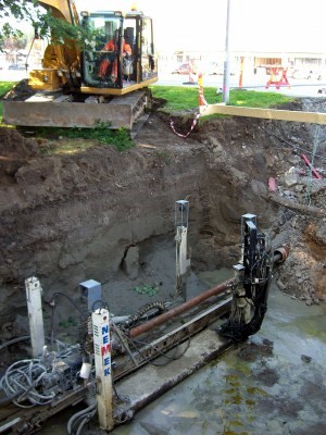 Boring under vei i fjell og løsmasser for fremføring av vannavløp kabler etc.